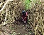 帽子を袋代わりに水を汲んで