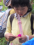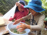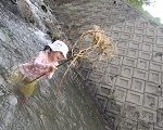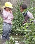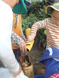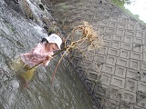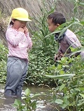 水の中で、なが~い草?(イタドリ?)を見つけた子ども達。