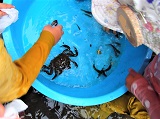 開けてみると、魚の他に大きなカニが!!!