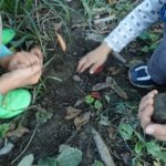 「そこに落ちたよ~」と協力して栗を集めました。