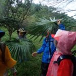 棕櫚の大きな葉を両手に持って