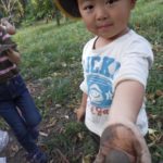 「あそこに栗がにあるぞ~」みんなで木をゆさゆさ。