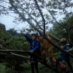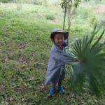 「あそこに栗がにあるぞ~」みんなで木をゆさゆさ。