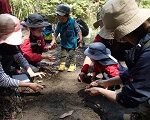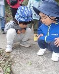 脅かさないように、そっと見守る子ども達。