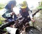 そのうち、穴が開いた袋から出てくる水が面白くなって
