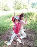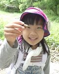 カナヘビを捕まえて、歓声を上げるRちゃんと
