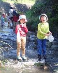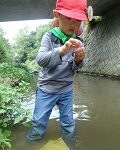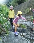 川でも、魚や、カエル、カニ等、色んな生き物を見つけて