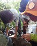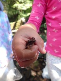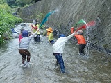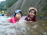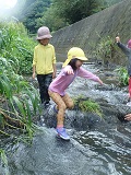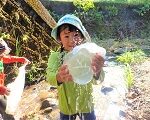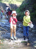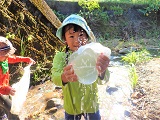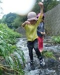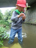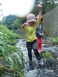 川でも、魚や、カエル、カニ等、色んな生き物を見つけて