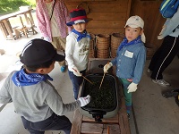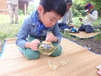 何を思ったか、カナヘビの口にグミを近づけたSくん。