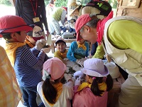 何を思ったか、カナヘビの口にグミを近づけたSくん。
