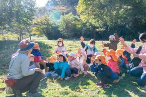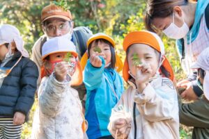 森の中で五感を使って、草花を使って遊んだり、生き物とふれあったり、