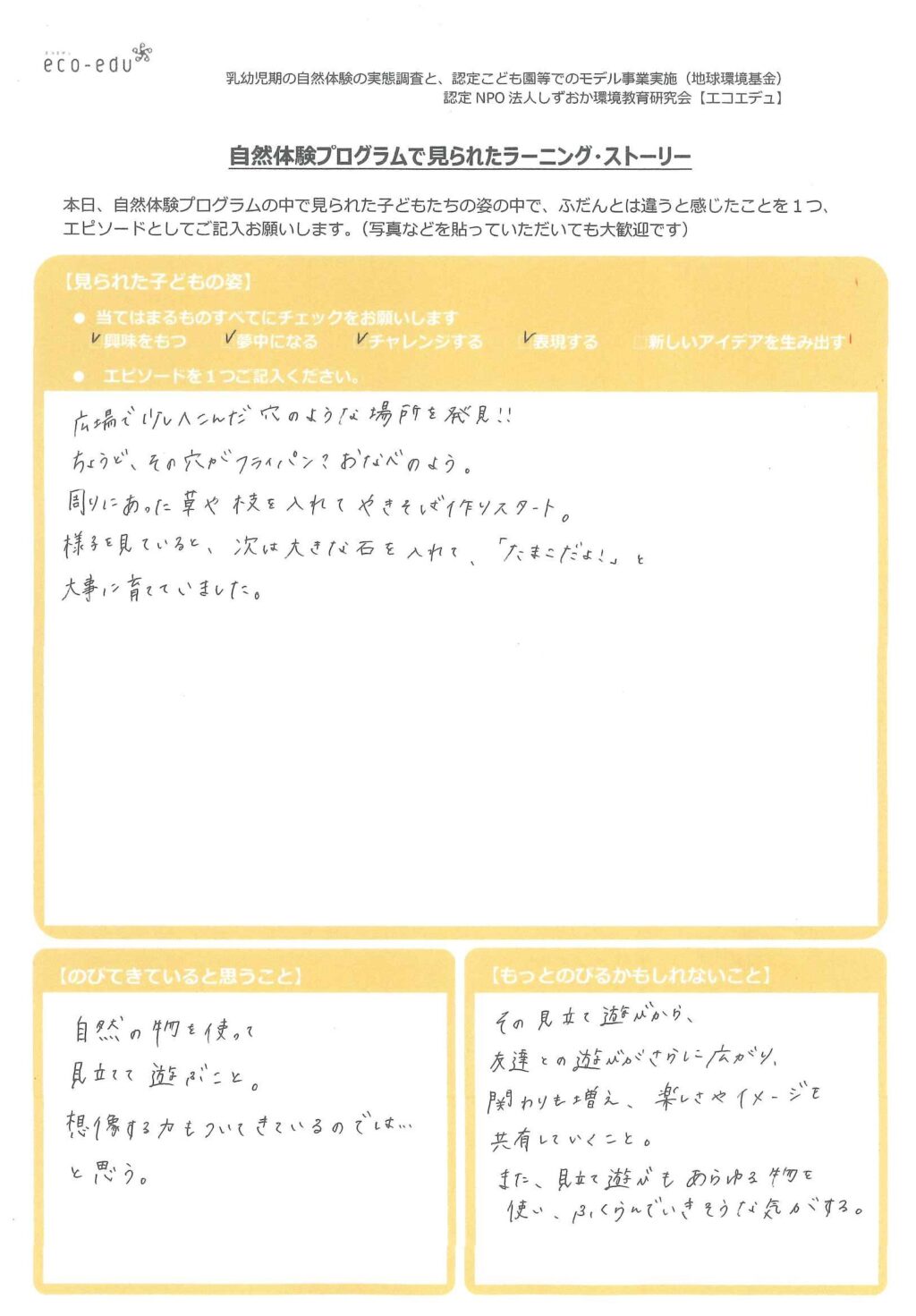 ➌3ヵ月後のラーニングストーリー(公園にて)