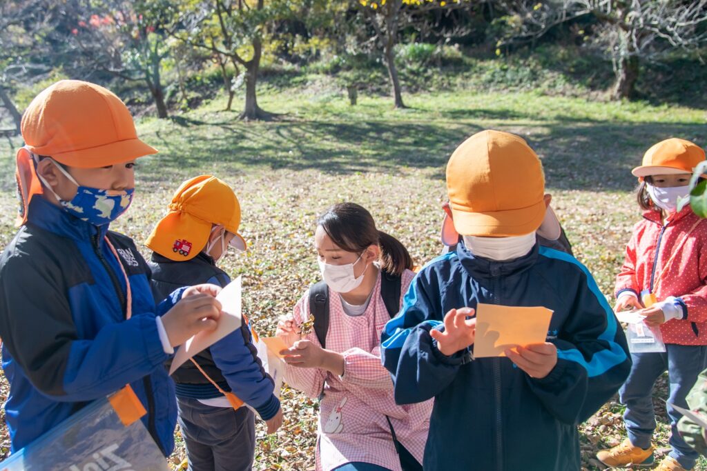 葉っぱの違いに気づく! 遊木の森での遊びを深める! 友達同士で見立て遊びが広がる!