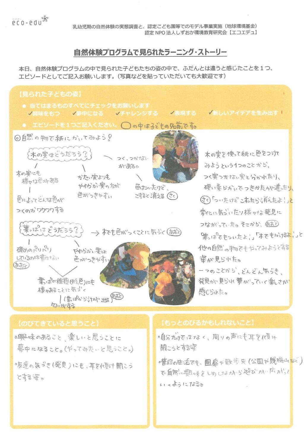 おもしろいものを発見したりする楽しさに気づく。