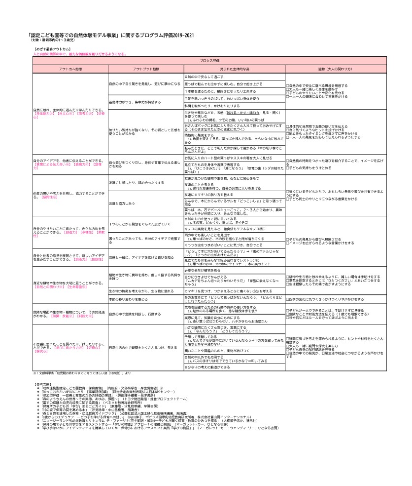 ◆評価としては、これら3園の自然体験プログラムでの